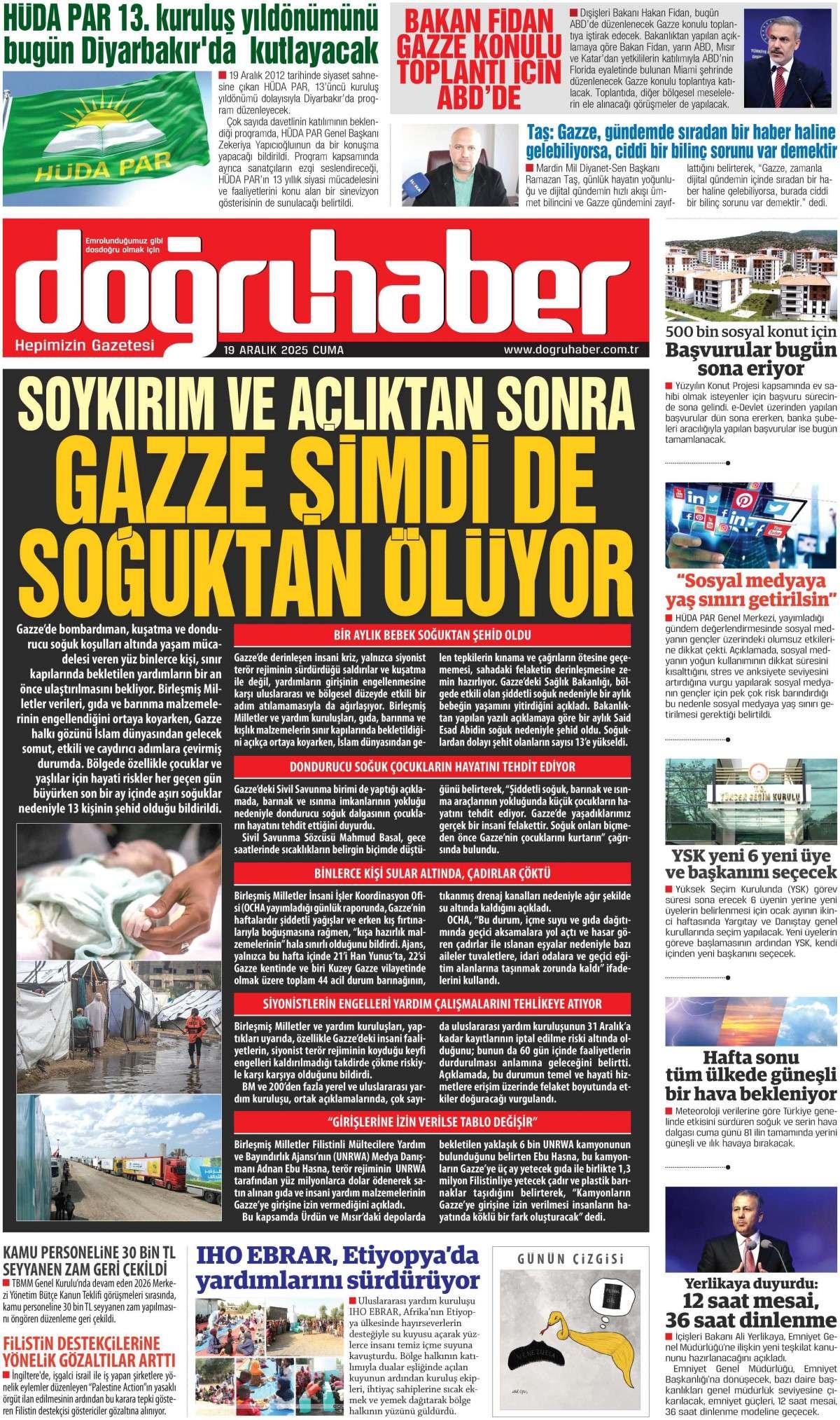 Doğru Haber Gazetesi 19 Aralık 2025 Günü Manşeti