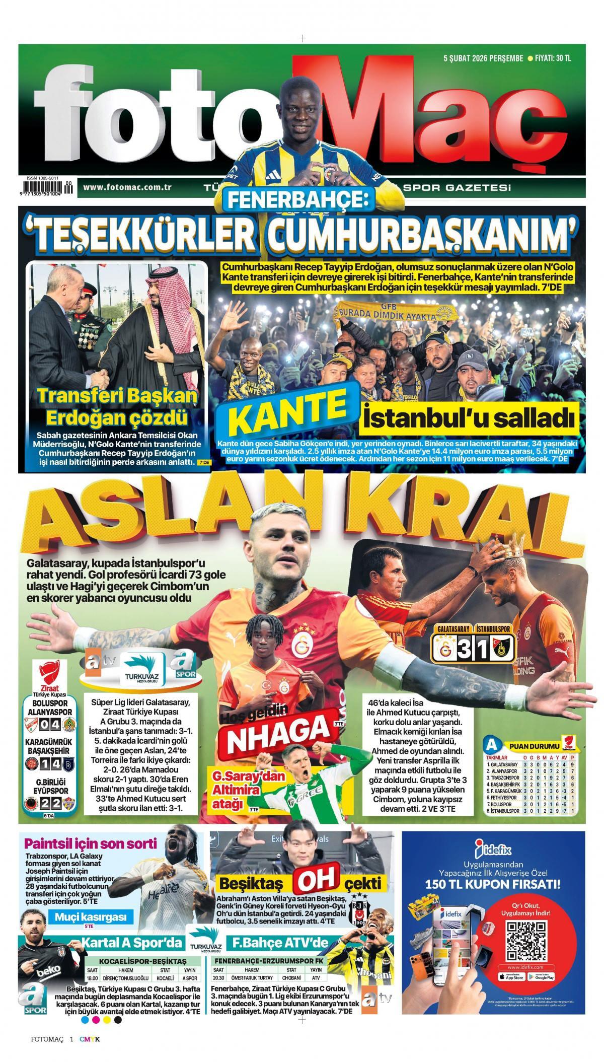 Fotomaç Gazetesi 6 Şubat 2026 Günü Manşeti